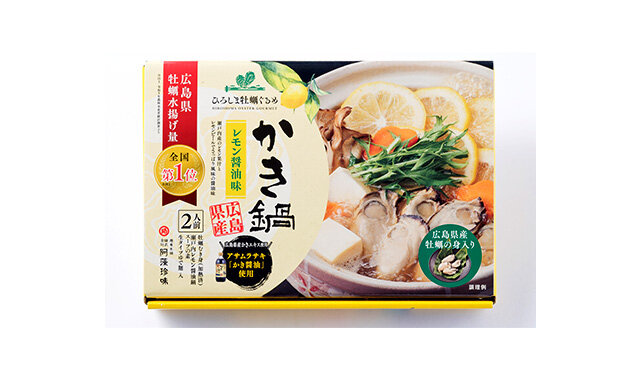 広島県産かきエキスを使用した「かき醤油」と、瀬戸内産レモン果汁とレモンピールを使った、かき鍋です。〆の麺までご堪能あれ。